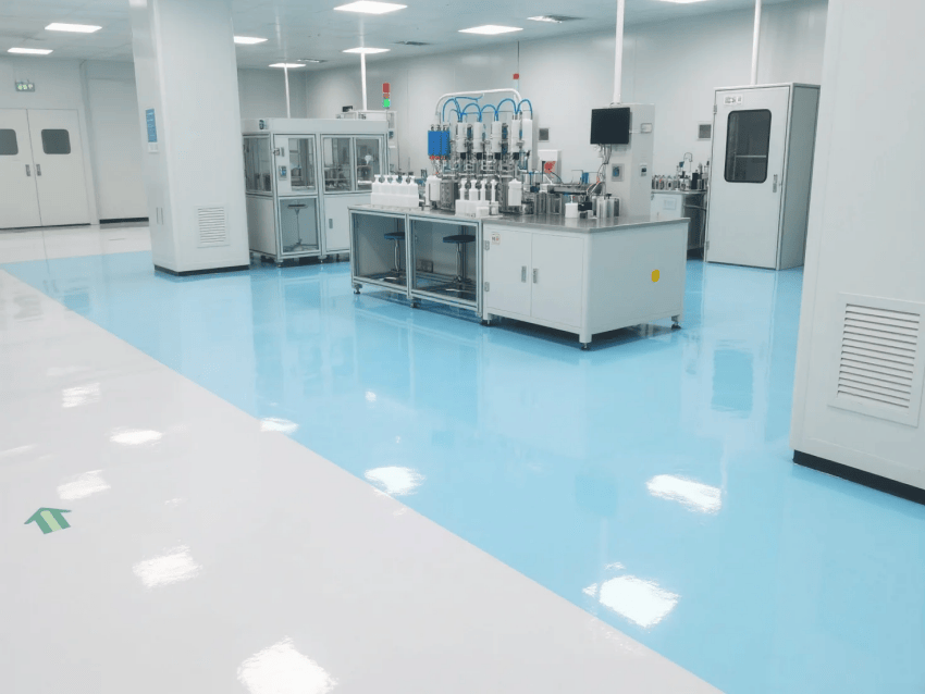 視覺設(shè)計(jì)上,深灰設(shè)備主體搭配熒光黃安全標(biāo)識,紅色應(yīng)急系統(tǒng)與藍(lán)色干燥氣體管道形成功能區(qū)分。采用防靜電PVC地坪(電阻10^6-10^9Ω)與弧形墻角結(jié)構(gòu),兼顧工藝嚴(yán)謹(jǐn)性與視覺科技感。