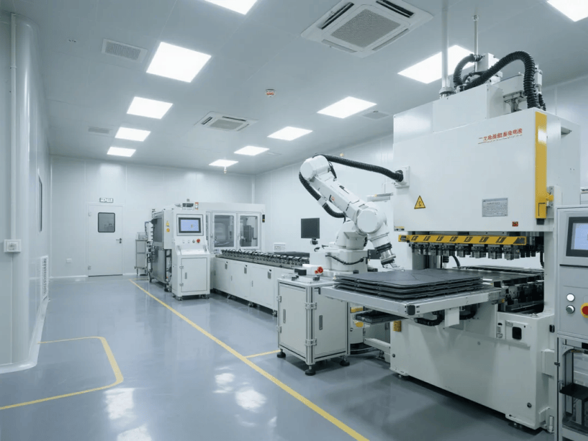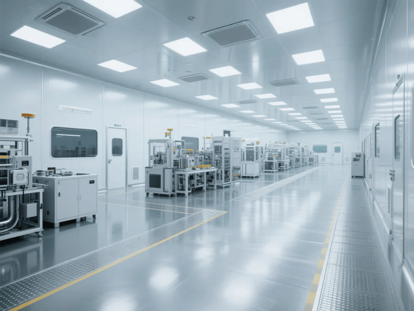 智能化配置:集成環(huán)境監(jiān)測與設(shè)備聯(lián)動系統(tǒng),白色彩鋼板墻面嵌裝LED智能看板,實時顯示生產(chǎn)數(shù)據(jù)與潔凈參數(shù)。機械臂工作站配備藍光定位系統(tǒng),與金屬灰地坪形成科技視覺呼應(yīng)。