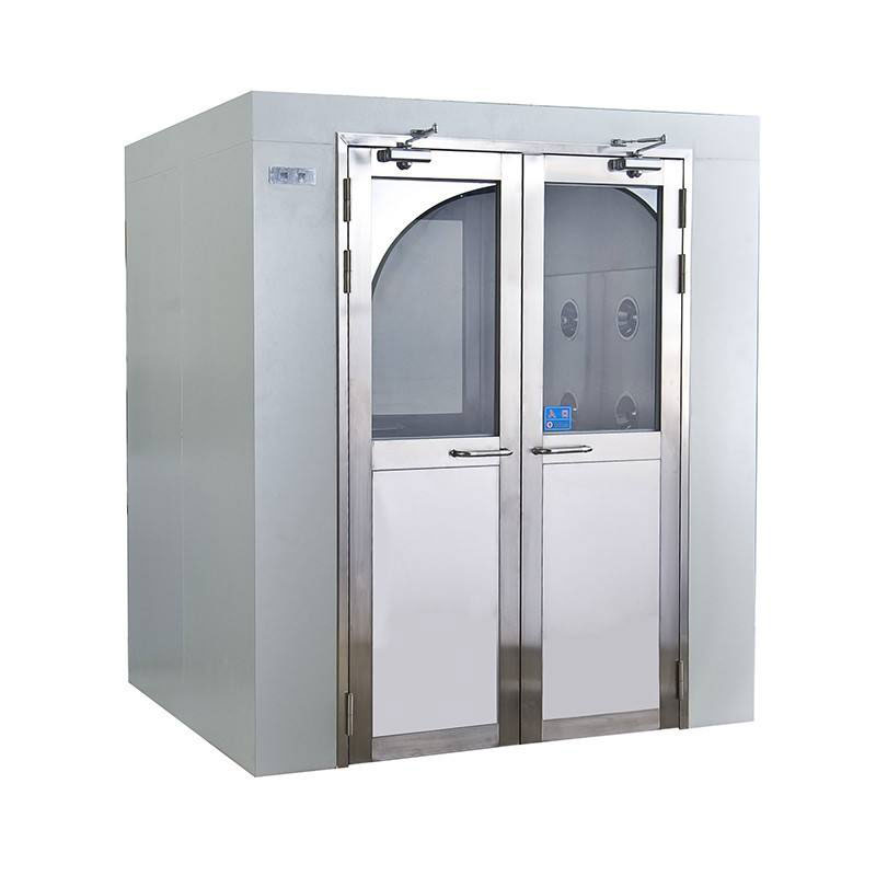 通往潔凈區必經之路—風淋室,是人員或貨位進入潔凈區由風機通過風淋噴嘴噴出經過高效過濾的潔凈強風吹除人或物體表面吸附塵埃的一種通用性很強的局部凈化設備。