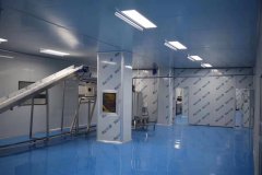 合肥食品廠凈化車間房墻、頂板才一般多選用50毫米厚的夾心彩鋼板生產制造。路面可選用環氧樹脂自流坪環氧地坪或高級耐磨損塑膠地板,有抗靜電規定的,可采用抗靜電型