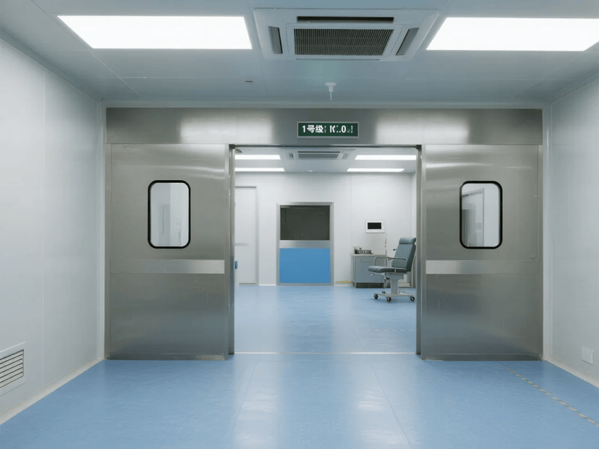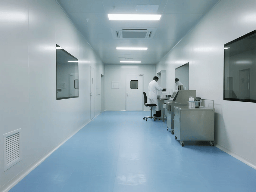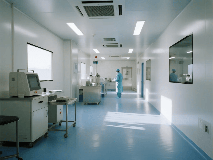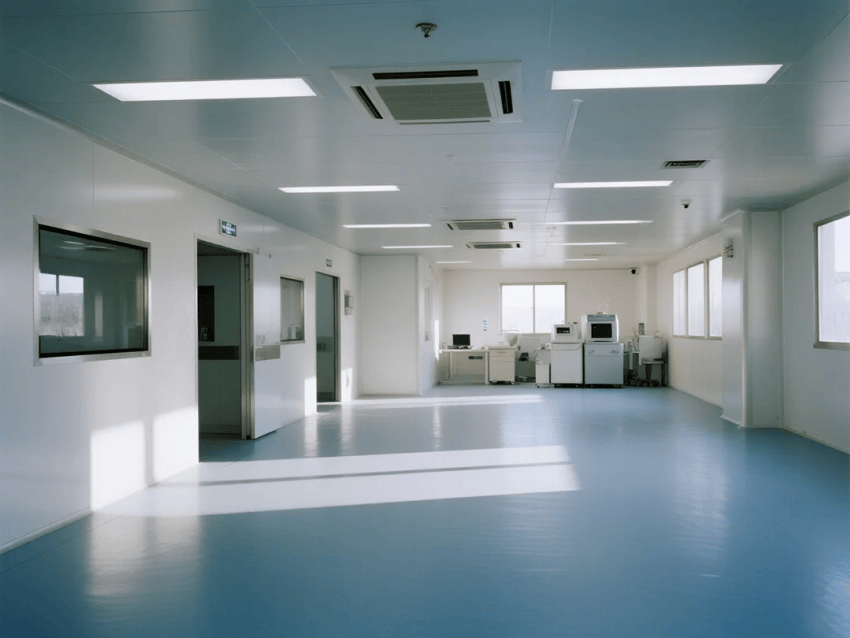 地面系統(tǒng):3mm厚天藍(lán)環(huán)氧自流平地坪,通過FDA認(rèn)證,耐磨系數(shù)≥0.65,靜電耗散時間<2秒;