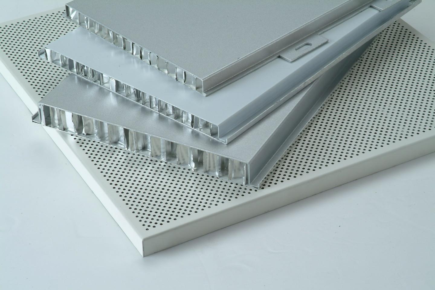 鋁蜂窩板表面采用經(jīng)氟碳輥涂處理的鋁合金板材,中間是符合美國航空標(biāo)準(zhǔn)的鋁蜂窩,與傳統(tǒng)夾芯板相比,它具有重量輕,平直度好,外形美觀,節(jié)點科學(xué),防火性能好,安裝方便等特點。