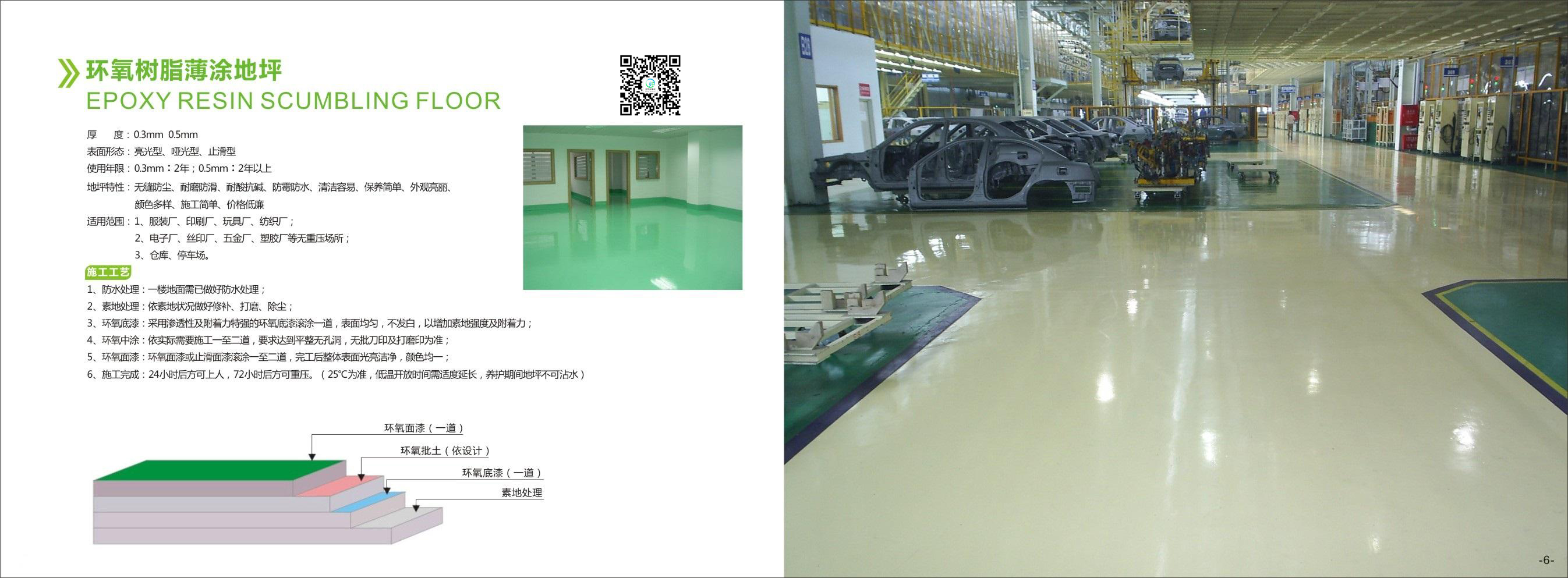 環(huán)氧樹(shù)脂薄涂地板漆針對(duì)一般輕工業(yè)作業(yè)場(chǎng)所用,適用于一般水泥砂漿地面及洗石地面,具有防塵美觀耐磨等特性。可根據(jù)客戶要求及實(shí)際生產(chǎn)需要對(duì)地坪厚度進(jìn)行施工。 性能特點(diǎn): 附著力強(qiáng),無(wú)縫防塵,耐磨,平坦性及遮蓋力佳; 耐微酸,微堿,防毒性佳,安全無(wú)毒。 適用場(chǎng)所: 原舊環(huán)氧地坪修補(bǔ); 醫(yī)院,藥廠,電子,食品廠; 實(shí)驗(yàn)室,地下停車場(chǎng)或輕放場(chǎng)所等行業(yè)。