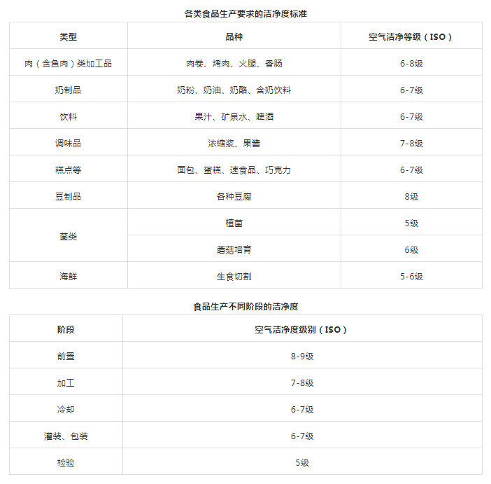3、清潔作業(yè)區(qū)(潔凈室):指衛(wèi)生環(huán)境要求最高,人員、環(huán)境要求較高,必須經(jīng)過消毒和更衣才可以進入,如:原料、成品裸露的處理區(qū)域,食食品的冷加工間、即食食品的冷卻間、待包裝即食食品的儲存間、即食食品的內(nèi)包裝間等。食品廠不同生產(chǎn)區(qū)域和空氣潔凈度等級