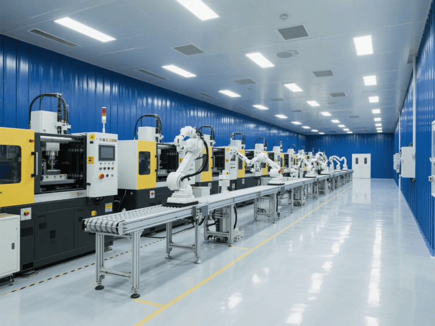 功能布局:原料區(qū)-注塑成型-檢測包裝呈U型流水線布局,工作站間設(shè)置快速傳遞窗。整體設(shè)計通過工業(yè)級材料與智能管控系統(tǒng)的結(jié)合,實現(xiàn)潔凈生產(chǎn)與高效運營的雙重目標(biāo)。