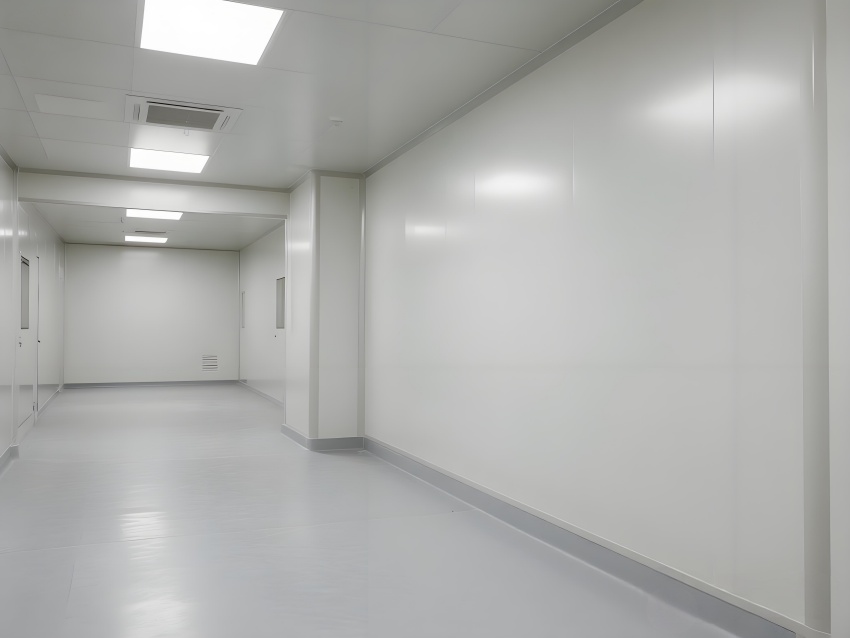 本凈化車間采用"科技極簡主義"風格,通過流暢的線性布局與模塊化設計強化專業感。主空間以珍珠白與淺灰為基調,搭配天藍色送風管道形成視覺引導,環氧地坪的鏡面效果反射頂部藍色凈化燈帶,營造無菌環境的通透感。設備區采用不銹鋼原色與玻璃觀察窗形成材質碰撞,電子屏實時數據可視化增強科技屬性。嚴格的人貨分流設計通過色彩編碼實現功能識別,墻面嵌入式消防與應急系統保持視覺平整。整體空間通過減少視覺噪點、強化功能分區線條,在滿足GMP動態潔凈要求的同時,呈現現代食品工業的精密與秩序之美,透明亞克力標識牌與柔光照明進一步減輕密閉空間的壓抑感。